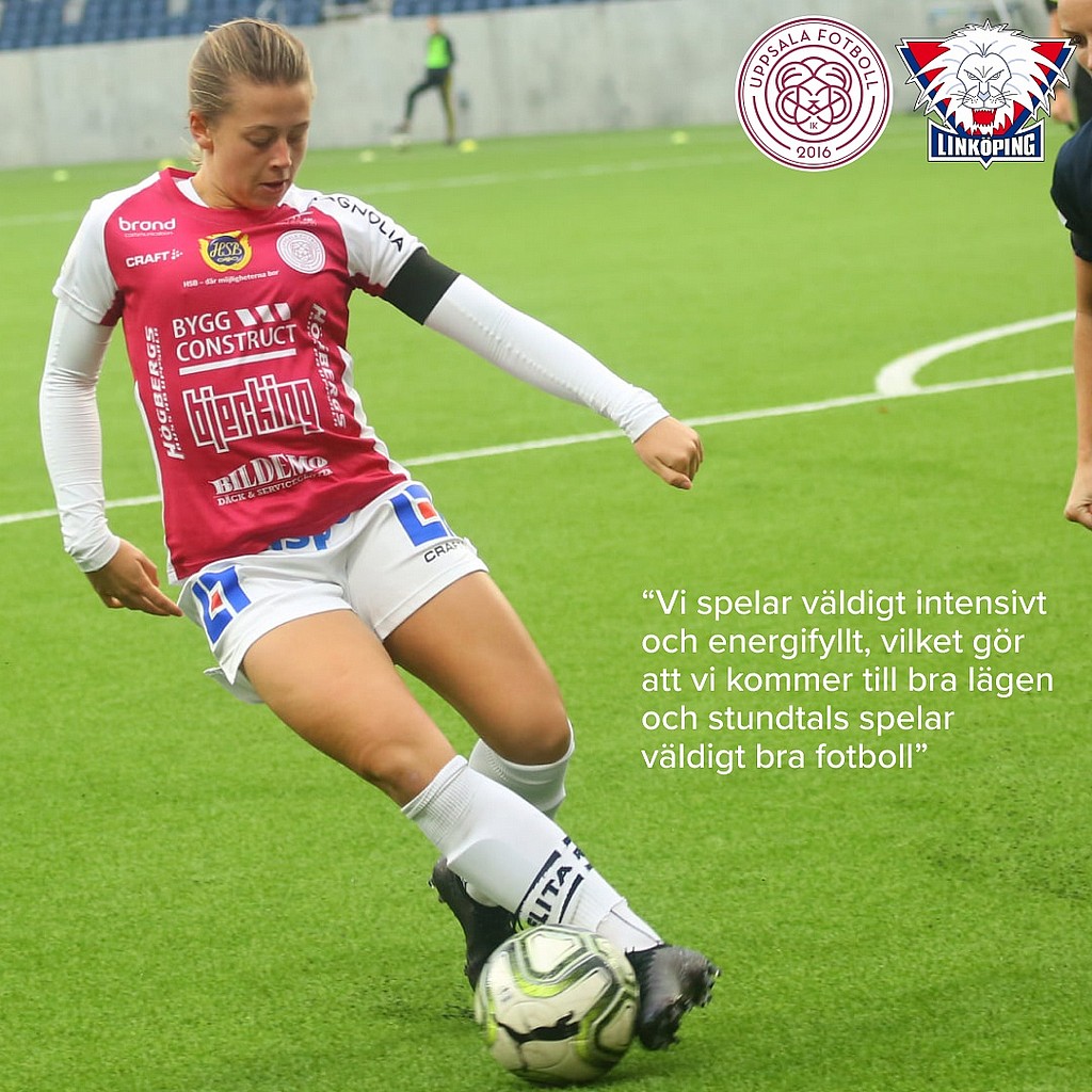 - Jag tycker att vi spelar och springer för varandra idag. Vi spelar väldigt intensivt och energifyllt, vilket gör att vi kommer till bra lägen och stundtals spelar väldigt bra fotboll, säger Uppsalas anfallare Cornelia Kapocs.
