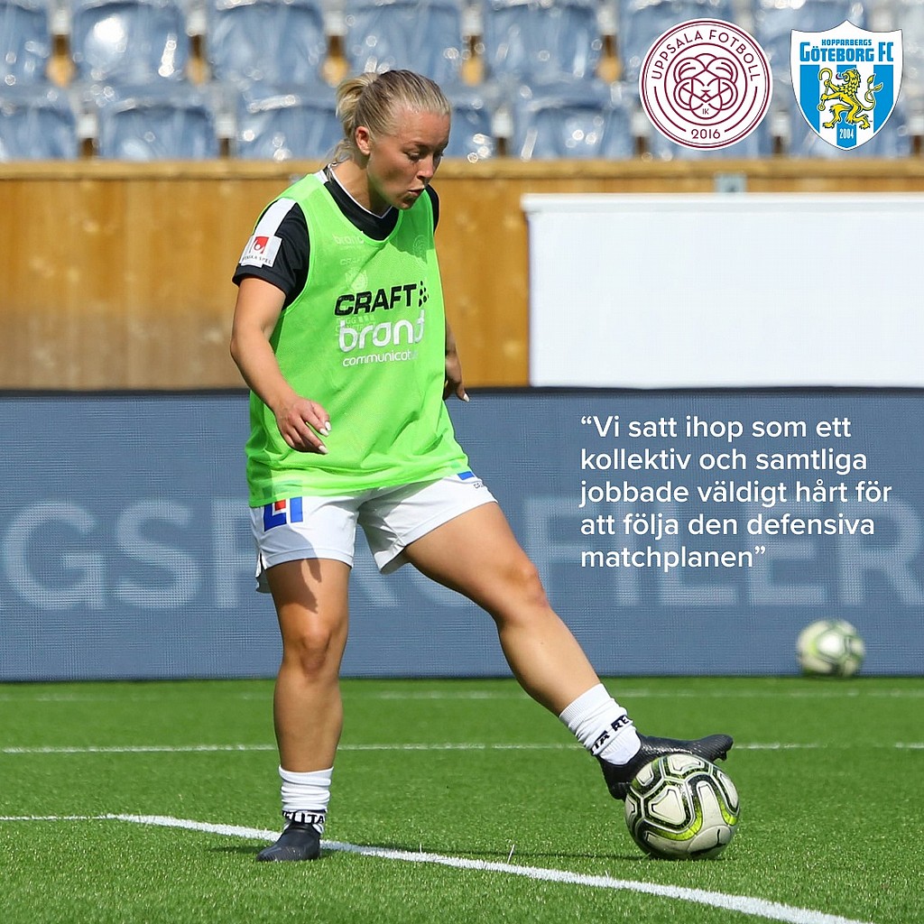 - Vi satt ihop som ett kollektiv och samtliga jobbade väldigt hårt för att följa den defensiva matchplanen. Jag upplevde även att vi hade god kommunikation mellan lagdelarna, säger Uppsalas vänsterback Ingrid Wixner.