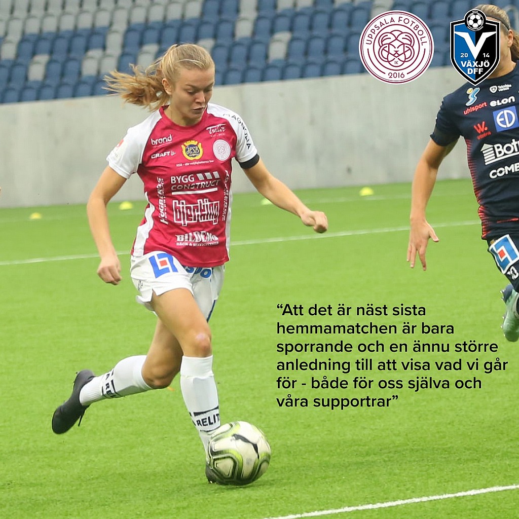 - Matchen mot Växjö är väldigt viktig för oss, vi behöver absolut vinna den för att ge oss själva en chans att hålla oss kvar. Den pressen kan vara både rolig och jobbig men för min del ser jag det bara som en möjlighet, säger Uppsalas anfallare Beata Olsson.