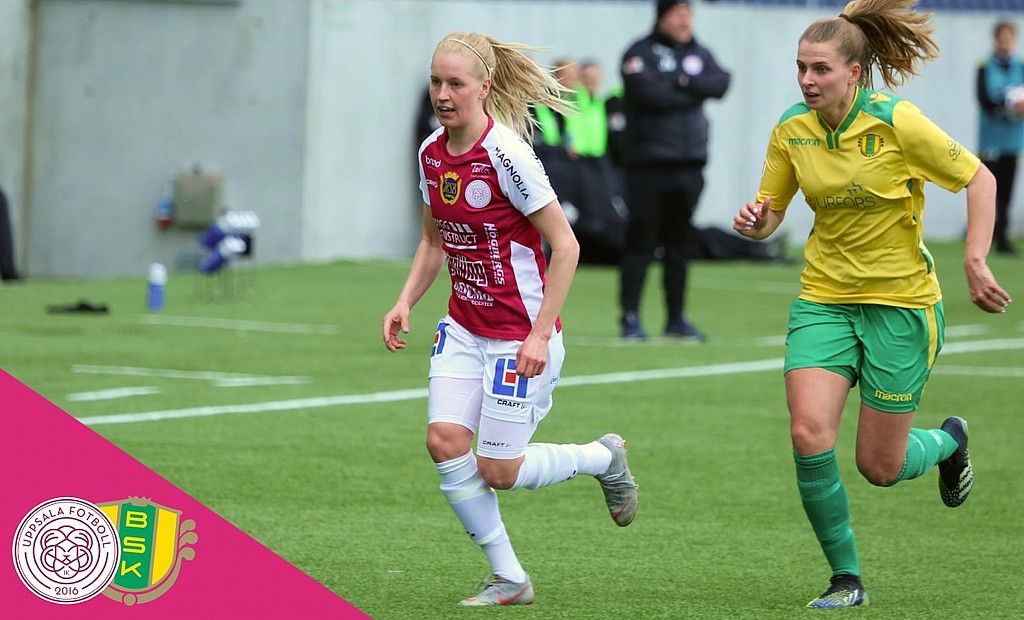 Bollstanäs hann utöka ledningen till 2-0 genom Karin Öberg innan Uppsala spräckte målnollan precis innan paus. Efter ett fint förarbete av Marika Bergman Lundin kunde Moa Öhman trycka in reduceringen i den 44:e minuten, och Uppsala kunde därmed gå till paus med lite kontakt resultatsmässigt.