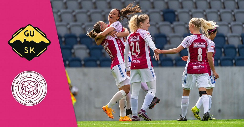 Hemmalaget GUSK inledde matchen bäst och var också det laget som tog ledningen efter dryga kvarten spelad. Mathilda Henrikssons tänkta inlägg blev ett skott som skruvade sig in i bortre hörnet. Efter baklängesmålet började Uppsala spela upp sig offensivt och visade varför man ligger i toppen av tabellen. 1-1 kom genom Johanna Renmark som retfullt petade bollen förbi GUSK:s målvakt Lina Lundqvist. Några minuter senare agerade Renmark istället framspelare då hon hann upp bollen precis innan den rann ut över sidlinjen och skickade in ett inlägg som Taryn Ries nickade in till 1-2.